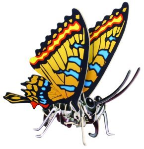 Wood butterfly puzzle with glossy life-like details. Interlocking pieces require no glue or tools for assembly. Package includes interesting Butterfly Facts